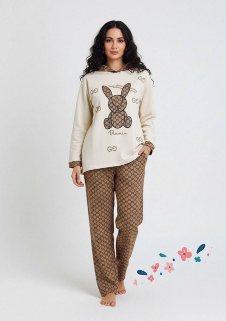 ست هودی و شلوار زنانه، از جنس تریکو با طرح خرگوش و تنخوری زیبا